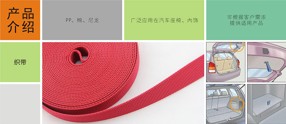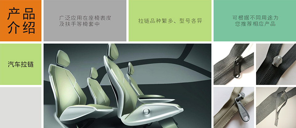 我們提供汽車專用拉鏈、標識扣、標識嘜、粘扣帶/刺毛帶,織帶/松緊帶,塑料扣件等其他汽車內(nèi)飾、汽車座椅系統(tǒng)部件。